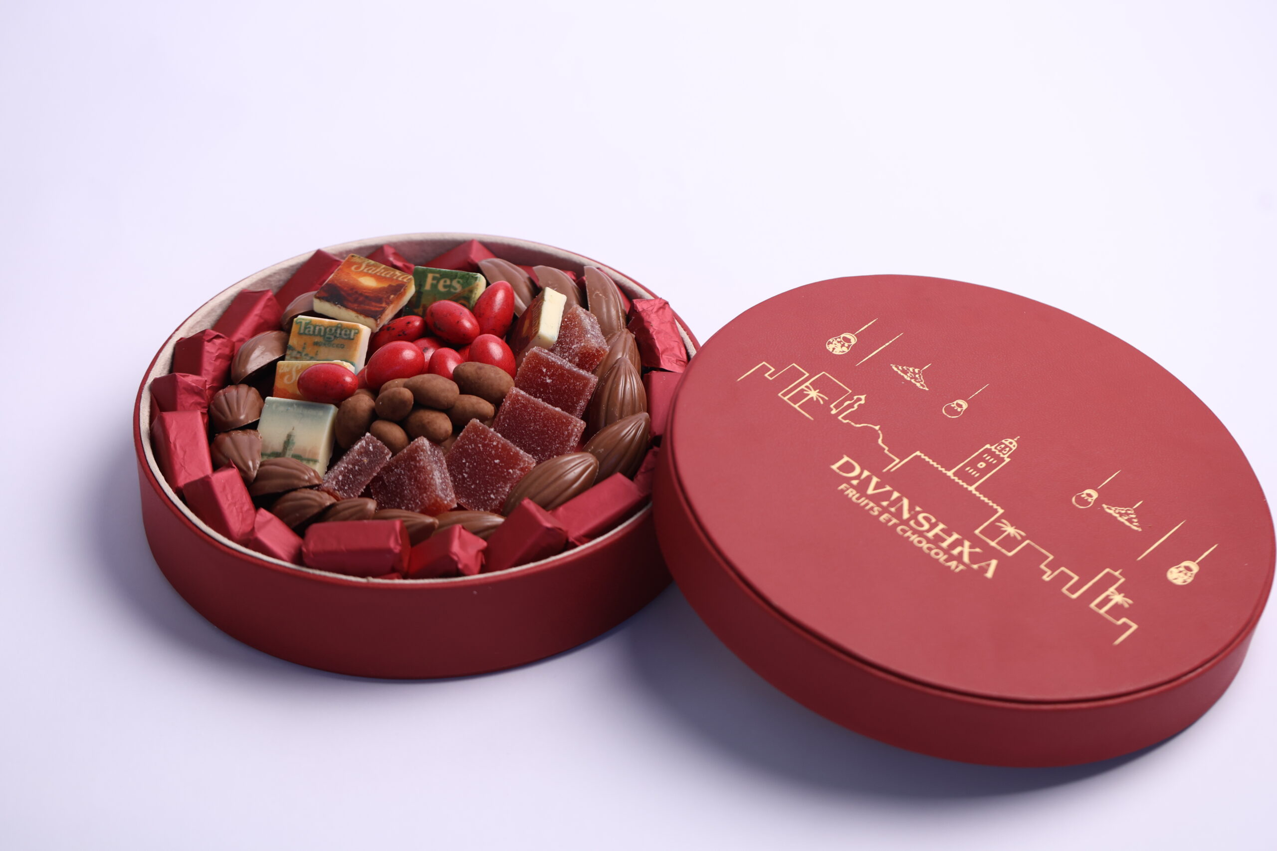 Des chocolats sur lesquels sont gravées les plus belles villes du royaume, accompagné de confiserie.