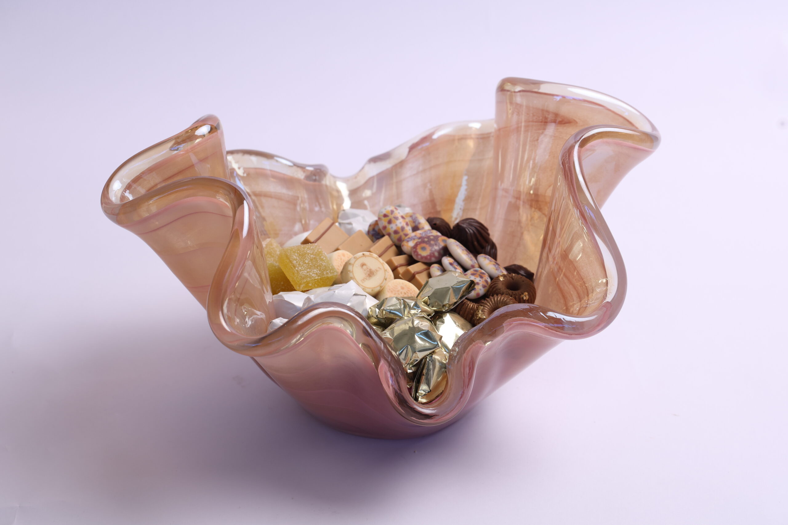 Coupe Murano véritable garnie de 800g de chocolats et confiserie.